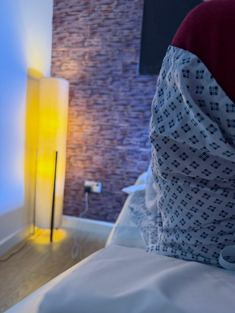 Within 30 mins, we had spoken about what was going to happen, our eating habits and how we were feeling. Then off came the clothes. I went first, and Benjamin stayed in the room. He couldn’t see anything, but was there, luckily we are a strong couple, with very minimal boundaries…